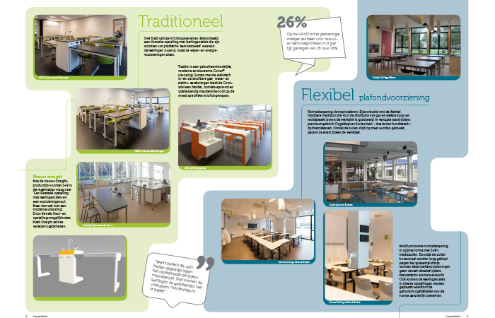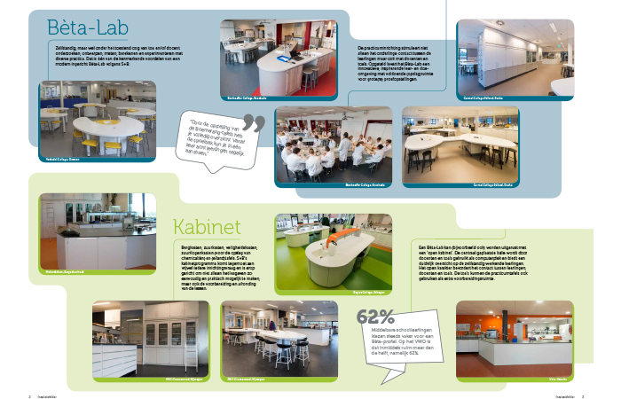 S+B heeft verschillende lijnen ontwikkeld, waar prakticumlokalen mee ingericht kunnen worden. Om scholen inzicht te geven in wat de mogelijkheden en voordelen zijn, is er een ‘inspiratiefolder’ ontwikkeld. In samenwerking met Studio Q